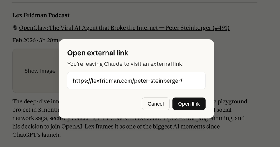 However, the experience is meh. Claude doesn’t show thumbnails and hates it when I try to open links (the only purpose of this whole thing):