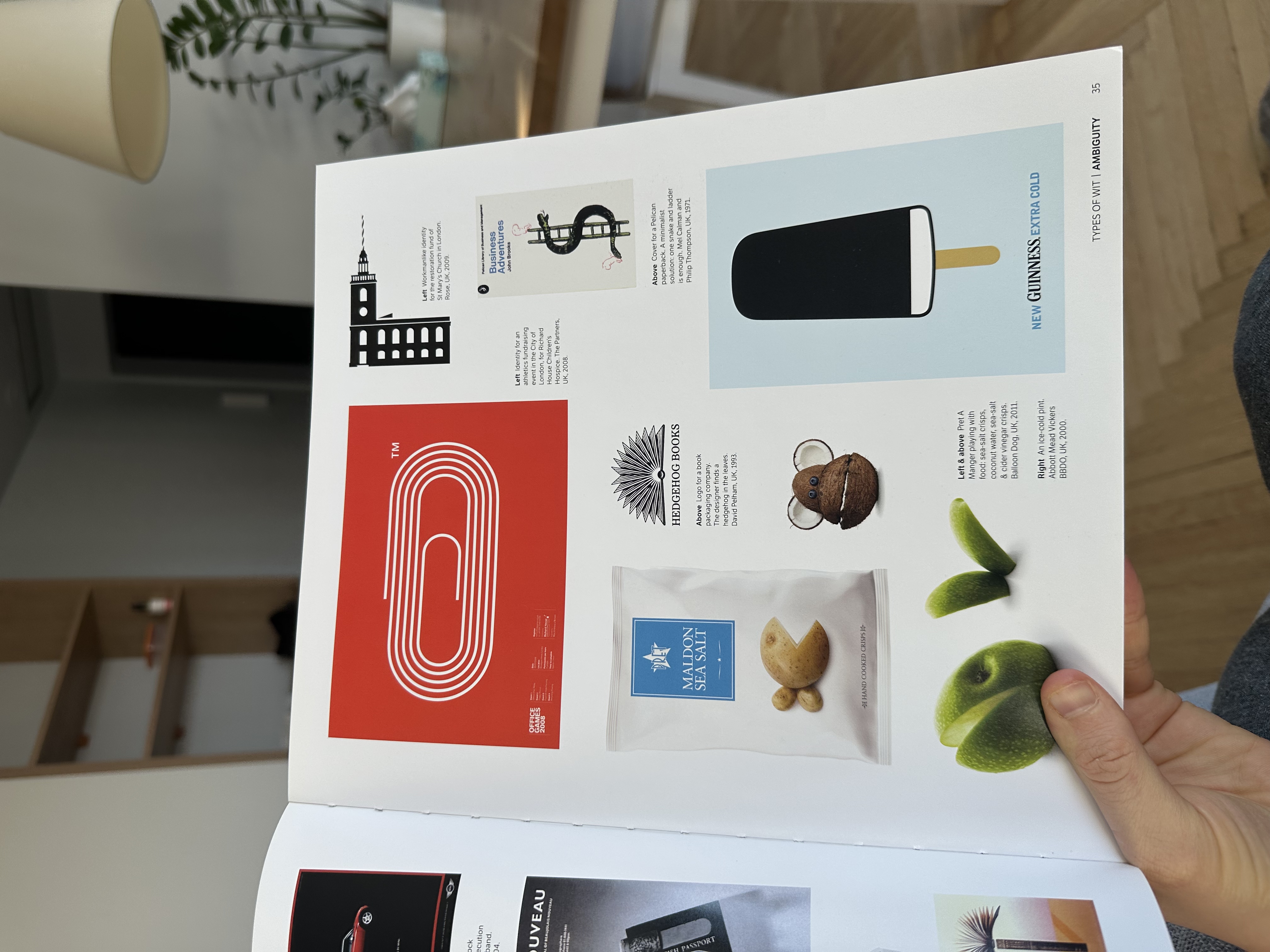 (📚 272 pages) A Smile in the Mind is an amazing collection of witty graphic design. It took me three months and $125 to get my hands on the revised edition, no regrets. Here’s a nice page for ya.